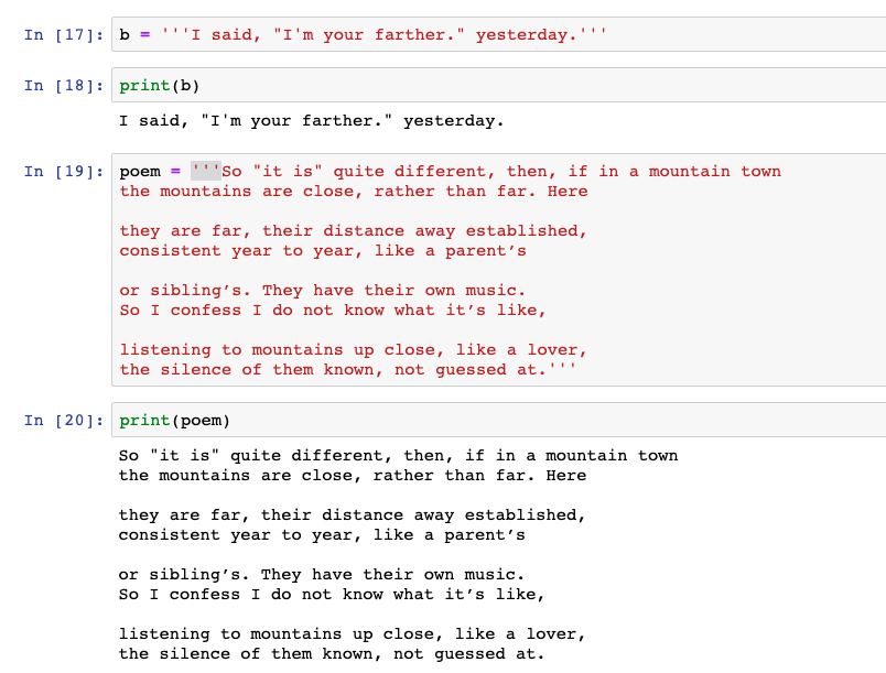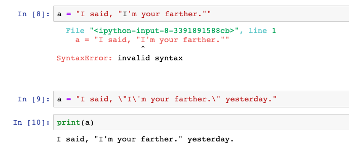 - 또한 위의 예처럼 I said, "I'm your farther." 와 같은 문장도, 그냥 연속3개의 단일부호로 쉽게 문자열 만들 수 있다.