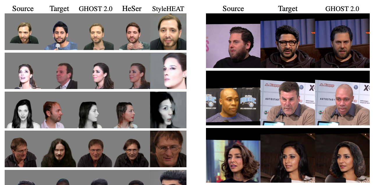 - 얼굴 인식 정확도 (CSIM): GHOST 2.0이 가장 높은 점수 기록