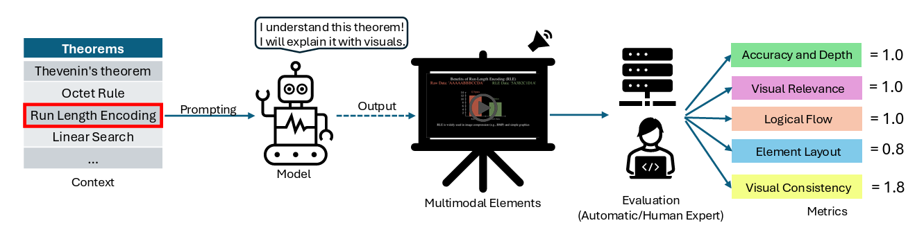- 평가 시스템: 생성된 설명의 정확성 및 시각적 요소를 평가하는 자동 평가 지표