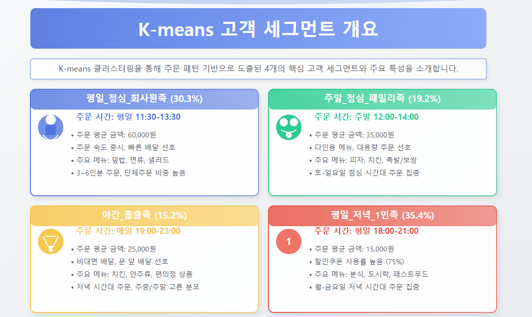 - 시간대별 주문 비율: 점심, 저녁, 야간 주문 패턴
