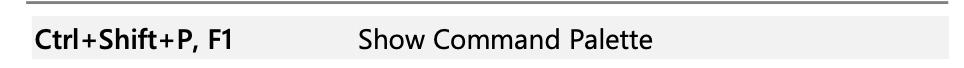 2. 다음처럼 커맨트 팔레트 ( Command Palette ) 를 실행한다. 단, 맥 (Mac)과 윈도우즈(Windows) 에서 숏컷 명령어가 아래와 같다. 해당 OS에 맞는 키보드를 누르면 된다.