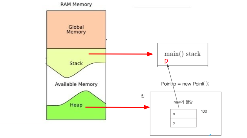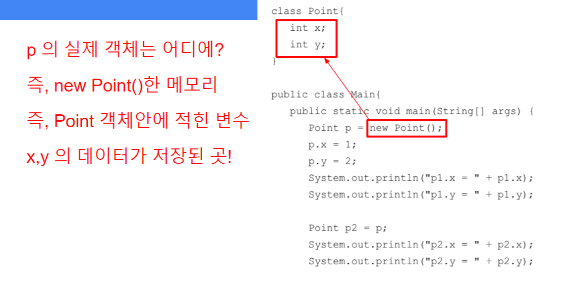 - 객체는 클래스를 힙(heap) 메모리 영역에 할당한 것입니다.