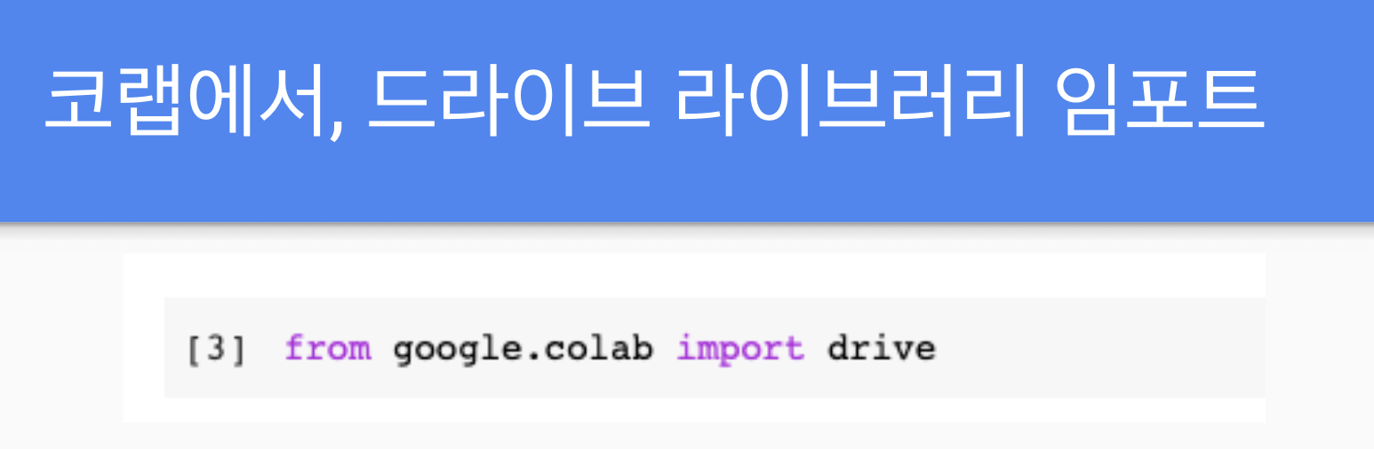 1. 코랩에서 드라이브 라이브러리 임포트 한다.