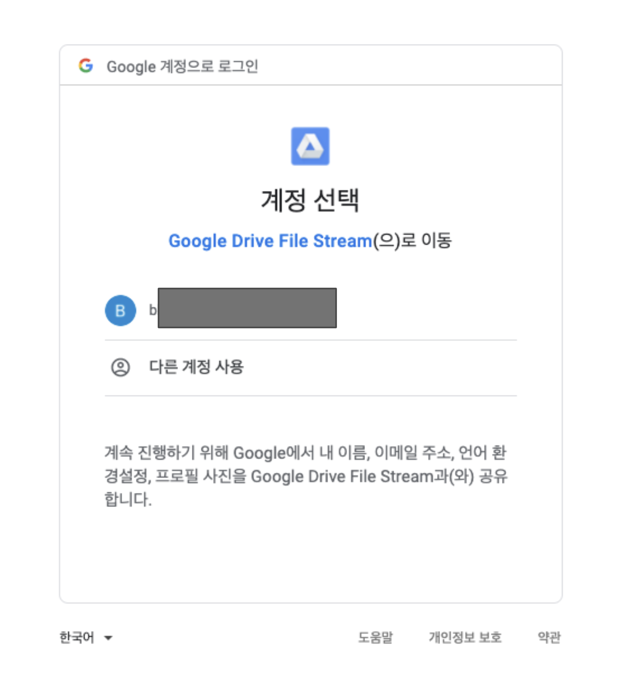 3. 드라이브 억세스 할 수 있도록 계정을 선택한다.
