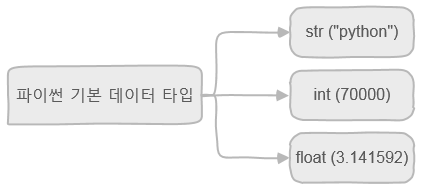 파이썬은 다음처럼 3가지의 기본 데이터 타입이 있다.