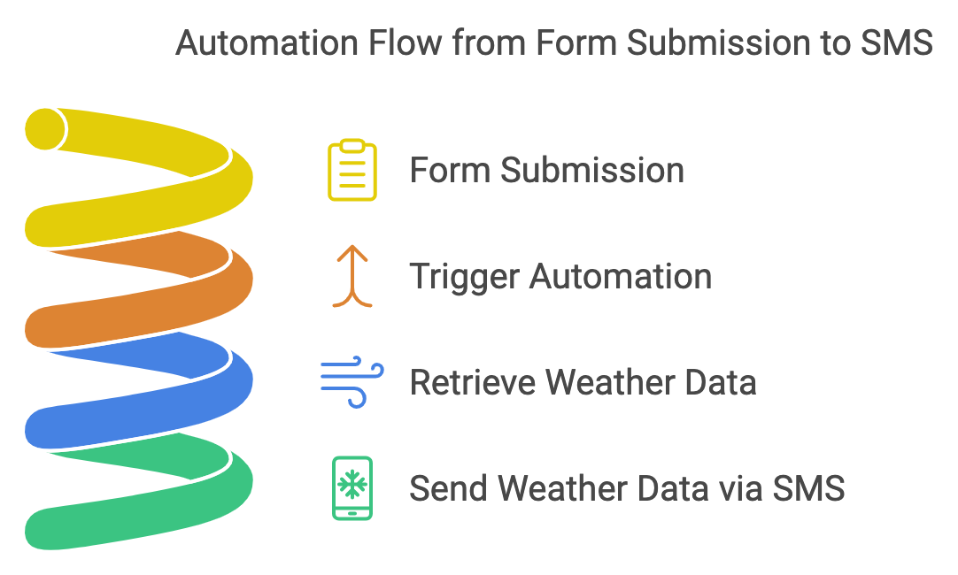 - 폼 데이터 활용: 설문 응답으로 받은 데이터(예: 지역, 전화번호)를 기반으로 자동화 실행.