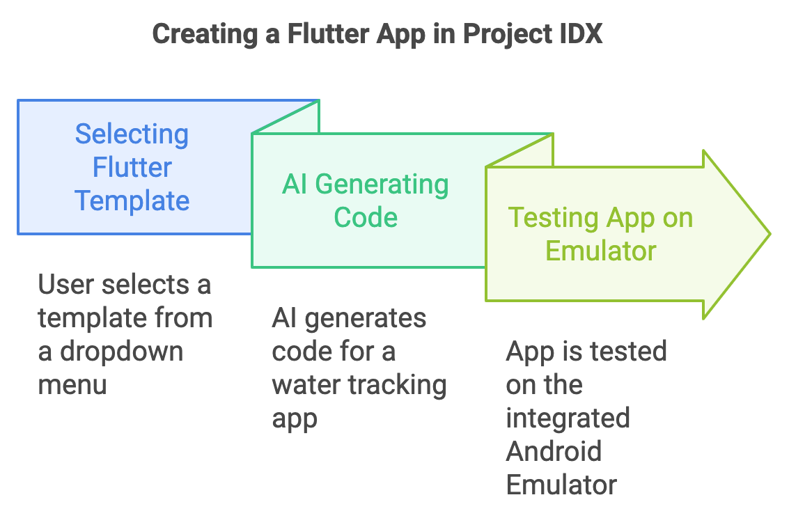 - Flutter 템플릿 선택: Project IDX에서 Flutter를 선택하여 새 프로젝트를 생성.